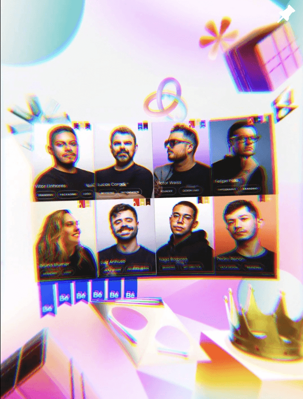 Behance, Dribbble, Instagram, Pinterest, Twitter, Linkedin, Facebook